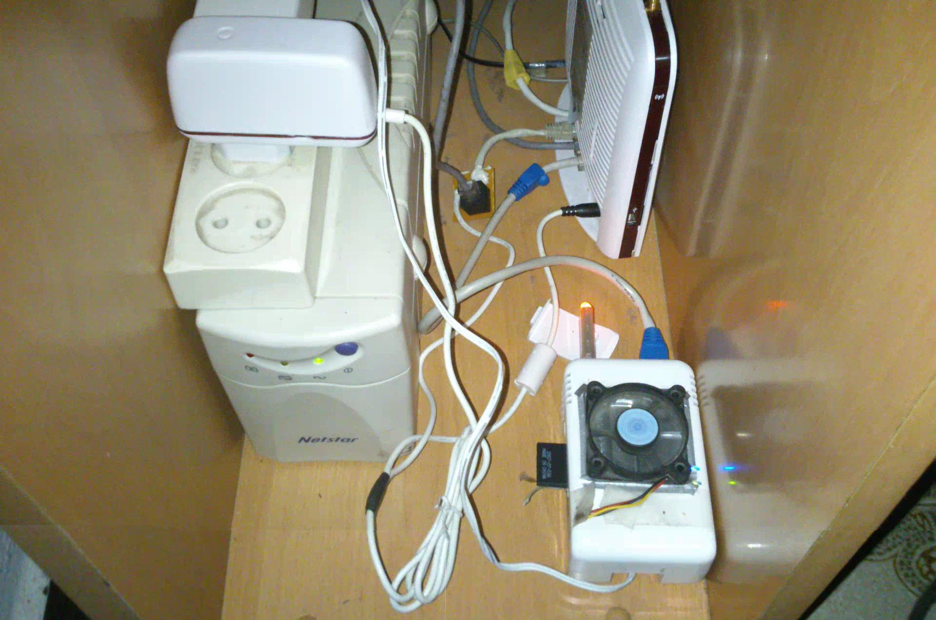 To conclude, these are the photos of both circuits in place and working. You can also see a SAI to avoid losing Internet in case of power outage and my Sheevaplug computer where this web is hosted.